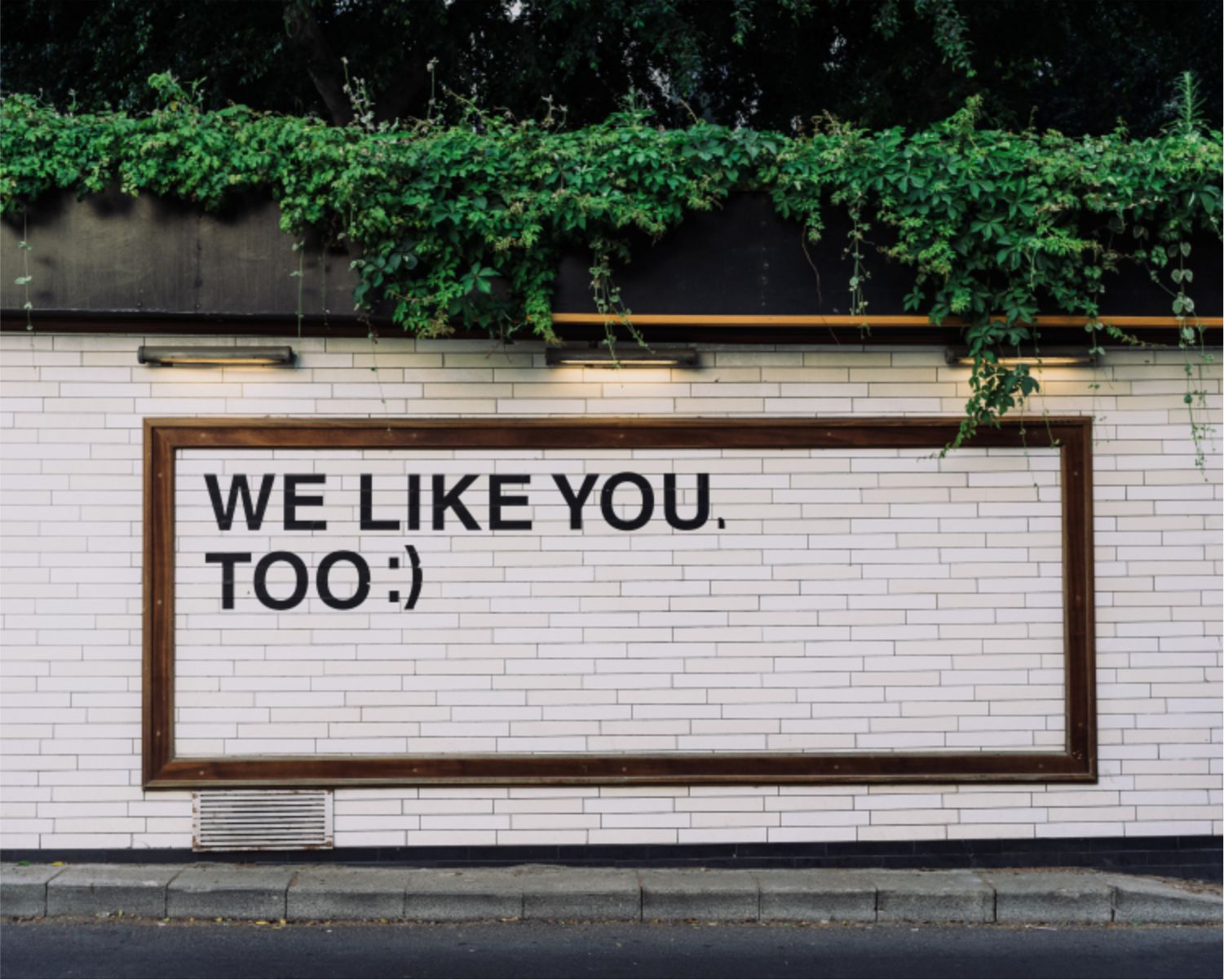 Wall with graffiti saying we like you too